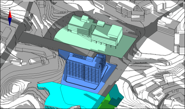 2) 형태 및 배치 변경 : 건축물의 배치나 형태를 조정해 주변 건축물의 일조를 최대한 확보합니다.